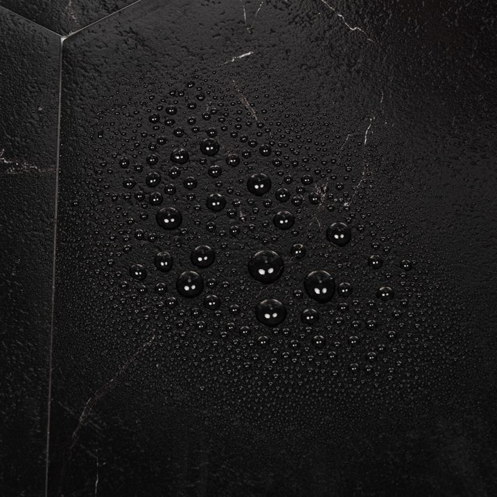 - Black marble looks to complement any decor style. With its self-adhesive backing, Vinyl flooring is designed for easy installation Allowing you to achieve professional-looking results with your DIY project. Our Tiles can be installed on most flat surfaces: wood, vinyl, tile, concrete, and stone.