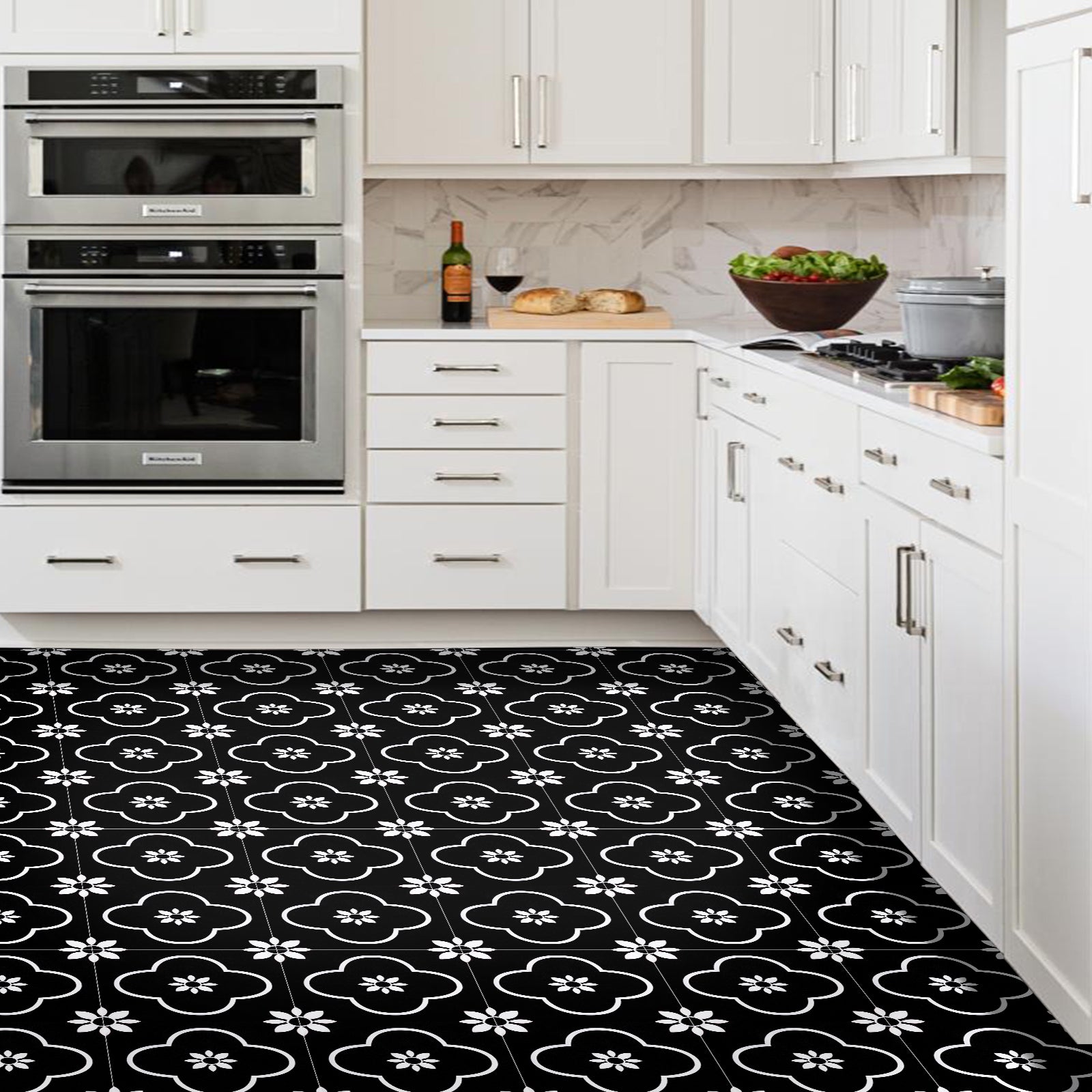 Abyssaly 10Pcs Black and White Vinyl Flooring Peel and Stick 12" x 12" Self Adhesive Floor Tile Removable Stickers Tile for Kitchen Bedroom Backsplash Solid