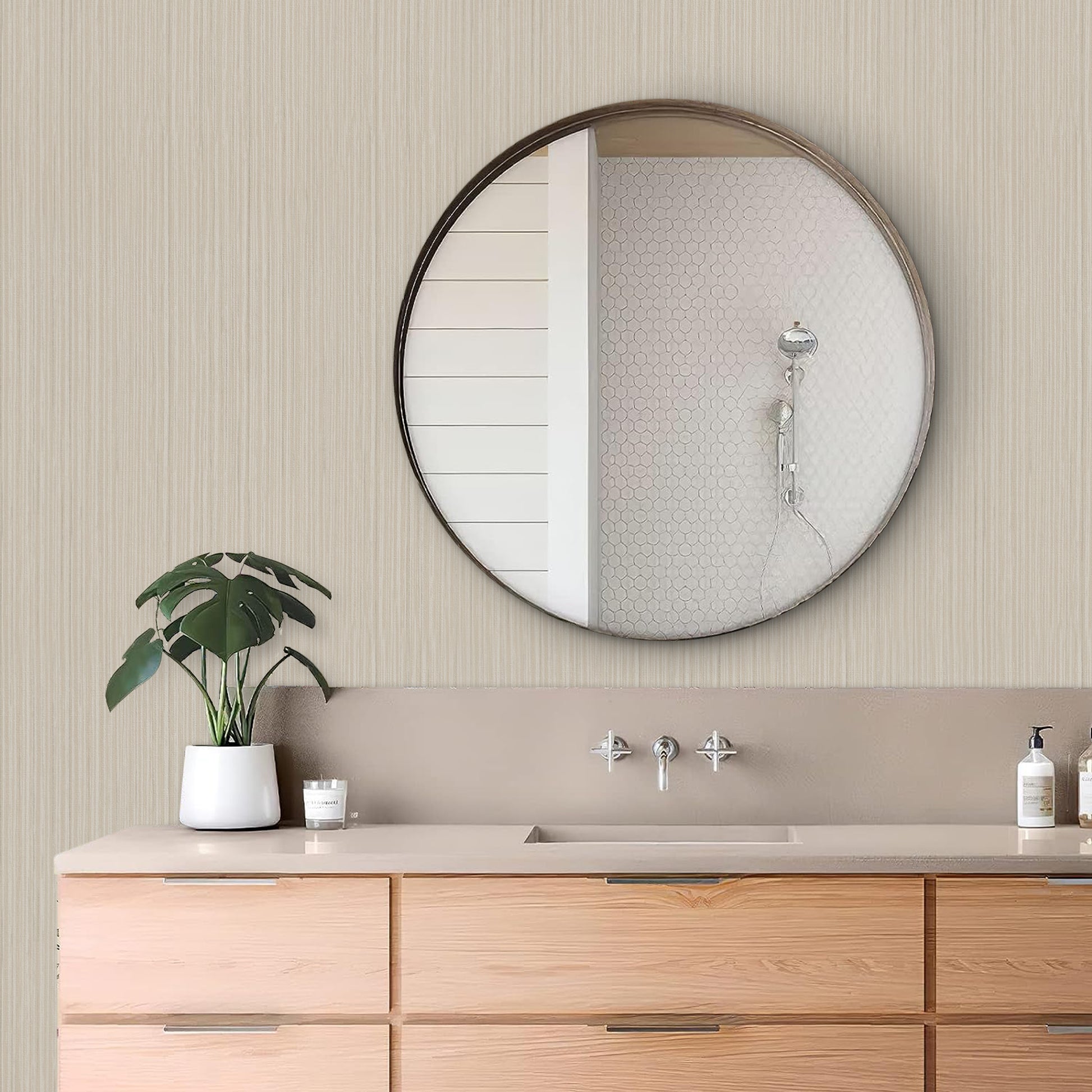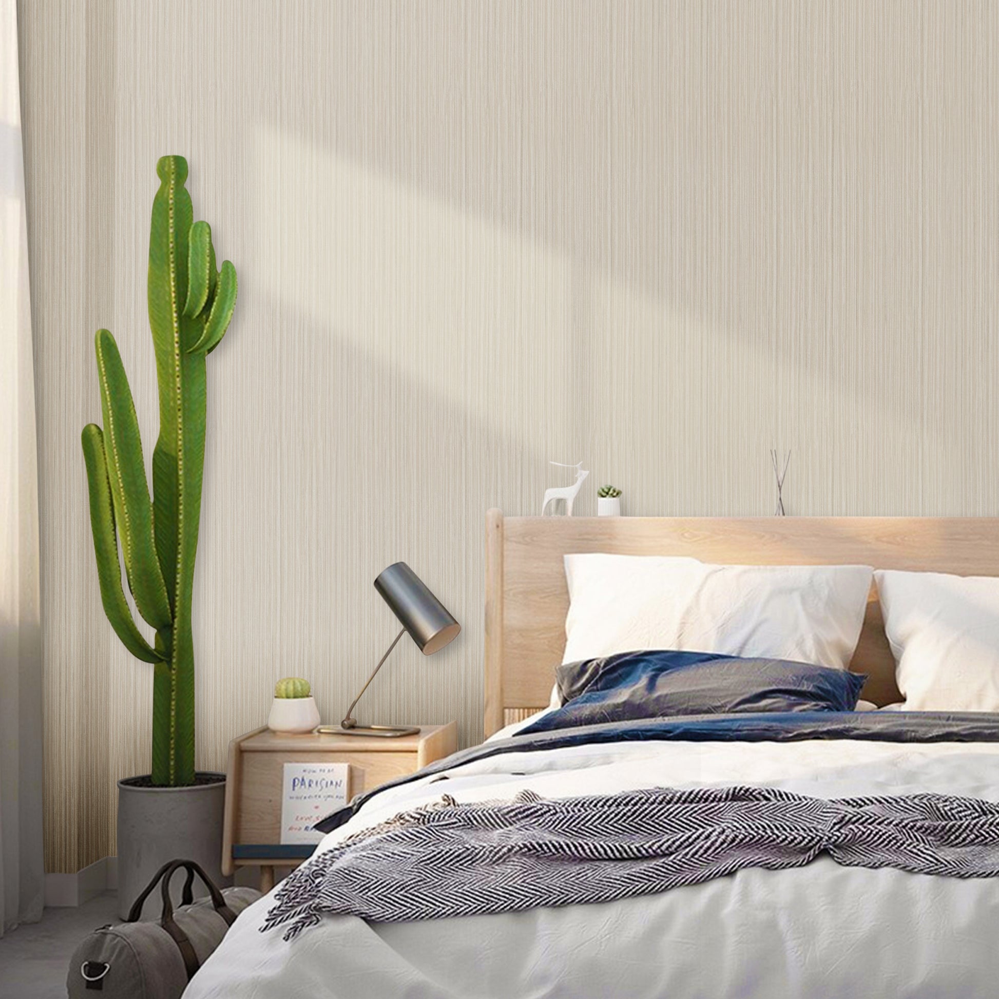 This beige/silver grasscloth peel and stick wallpaper texture wallpaper linen self-adhesive wallpaper is exquisite and elegant, with simple lines, a perfect combination of fresh and simple concise atmosphere, and realistic grain effect, whether it is full or partial paving, there will be a real feeling of returning to nature.