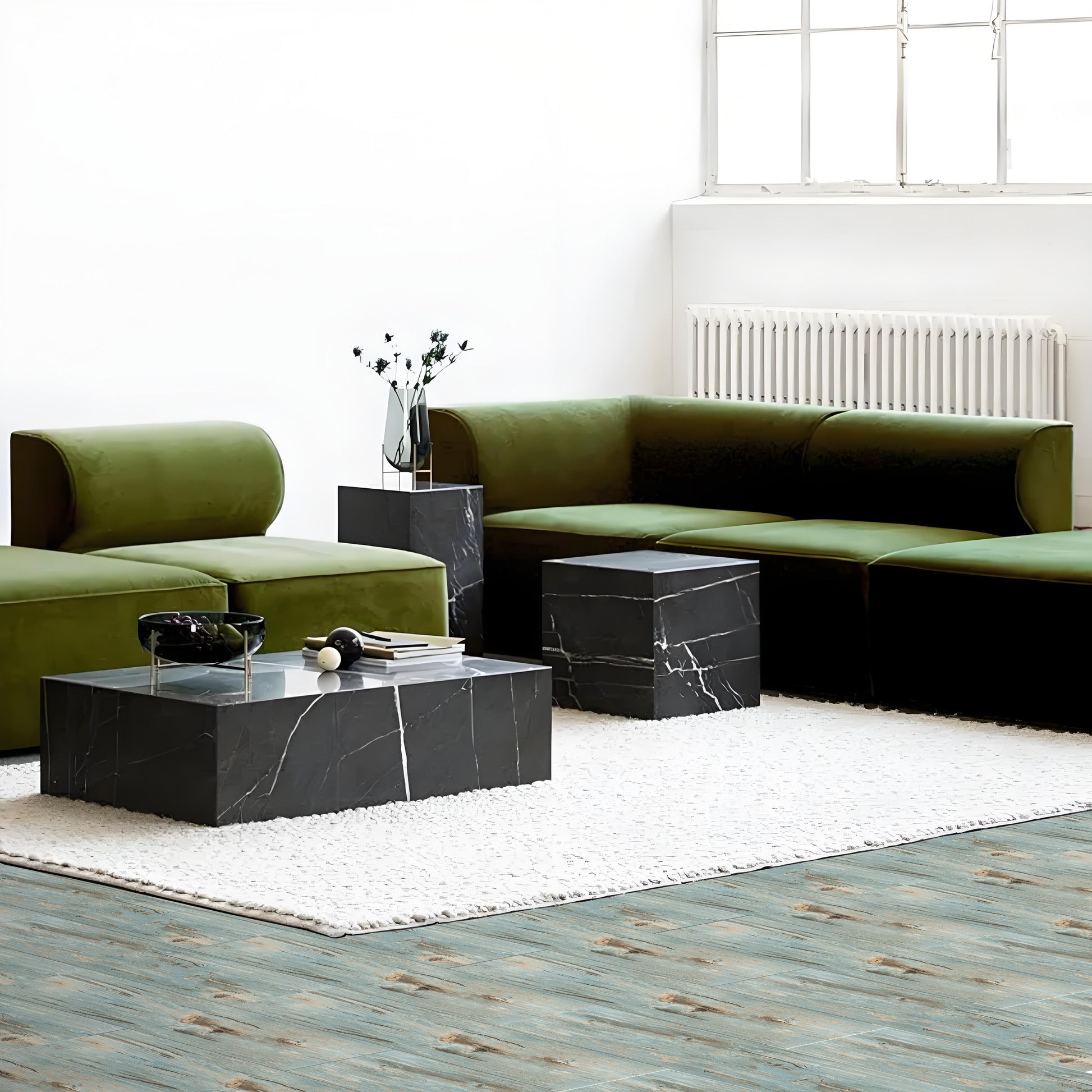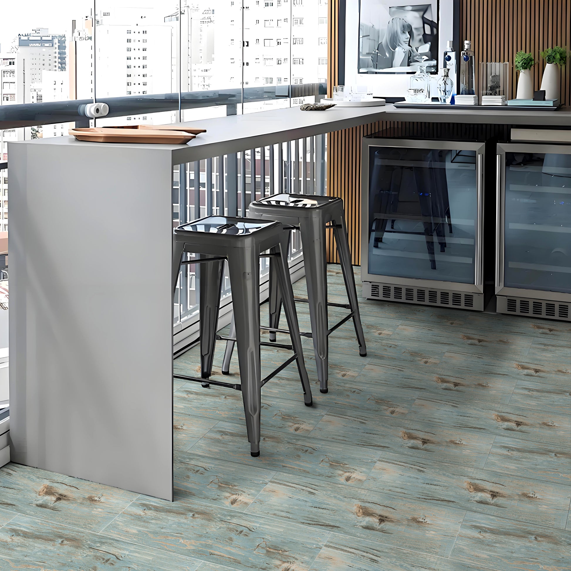 Virgin vinyl material with a textured low lustre finish and permanent adhesive makes tiles durable.These vinyl flooring tiles feature a blue and grey design with realistic wood grain details.