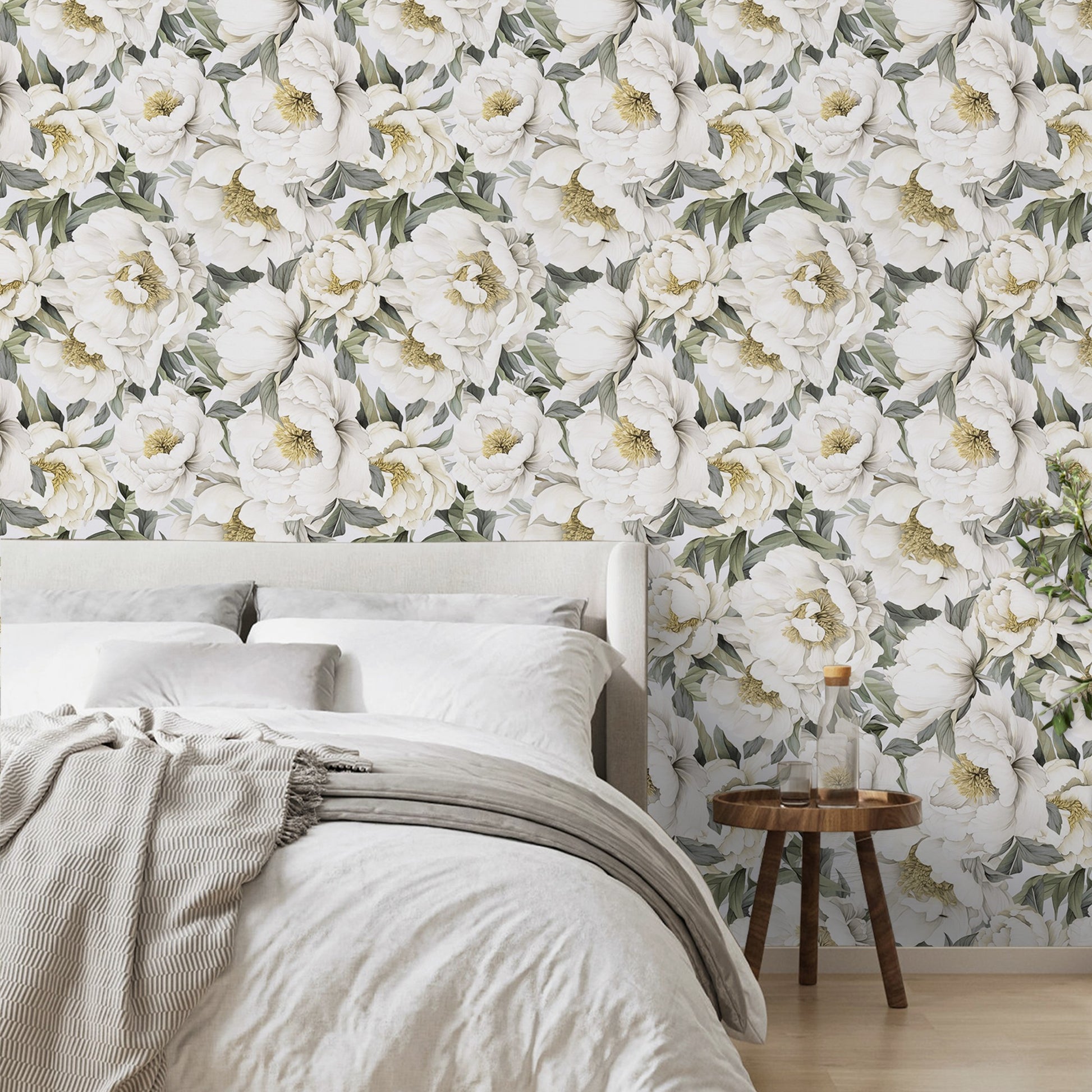 Abyssaly Beige Floral Contact Wallpaper 17.7 in x 236 in Peel and Stick Wallpaper Self-adhesive Removable Wall Paper for Home Decor Bedroom Livingroom Kitchen Wall Fabric and Furniture Renovation