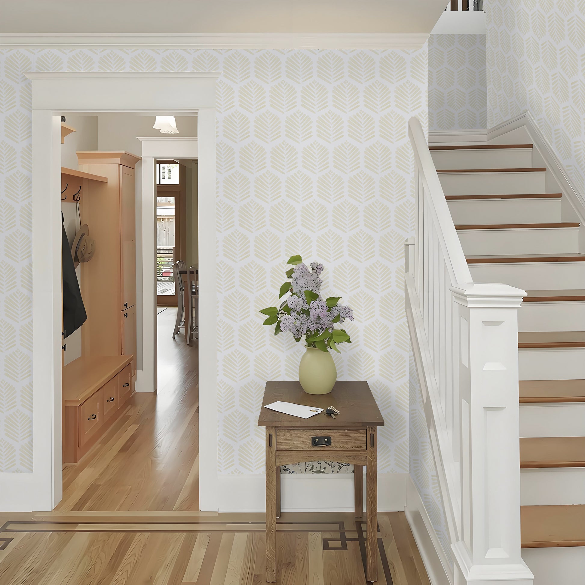 Abyssaly Peel and Stick Wallpaper 17.3"×118" Beige Leaf Self-Adhesive Removable Modern Wallpaper for Home Decor