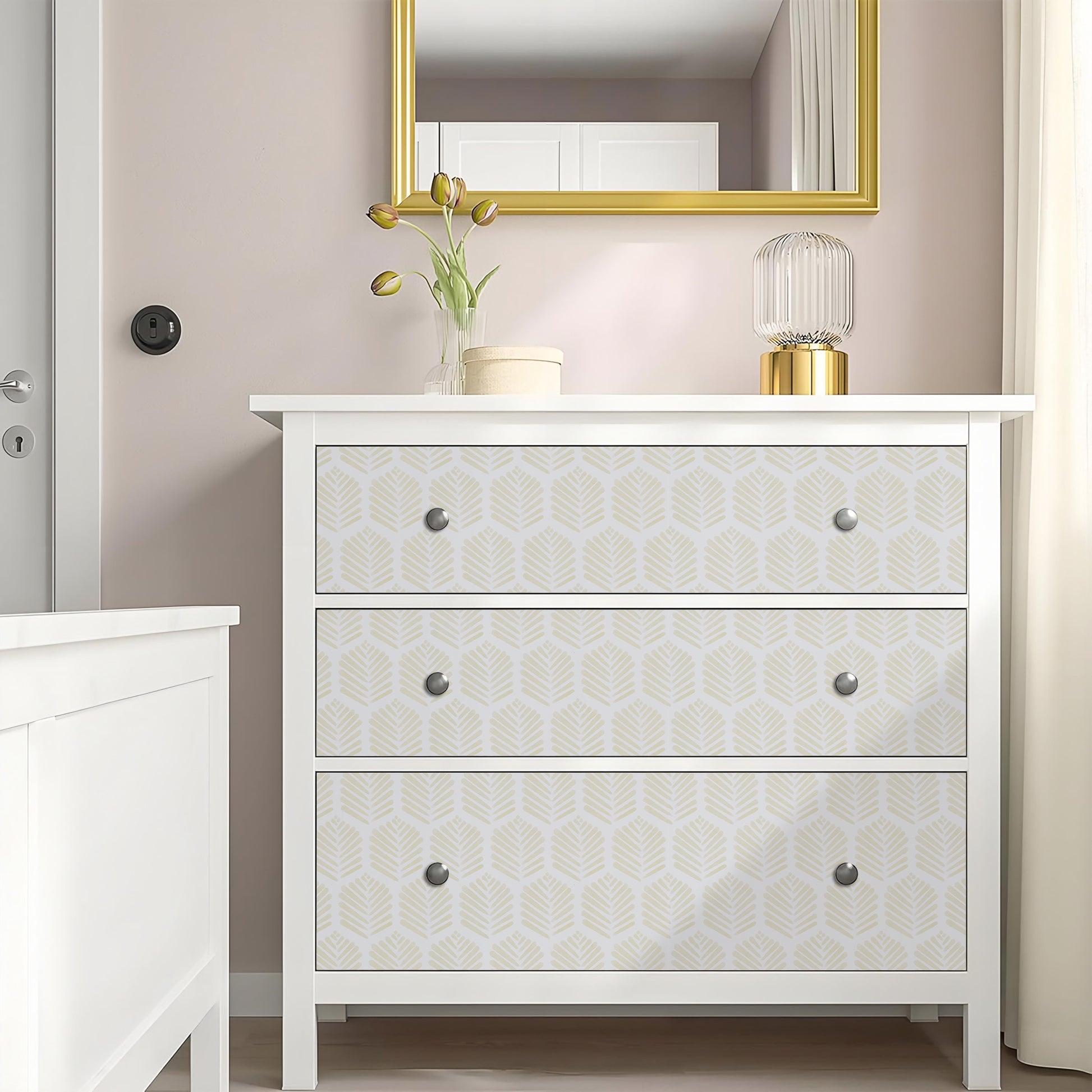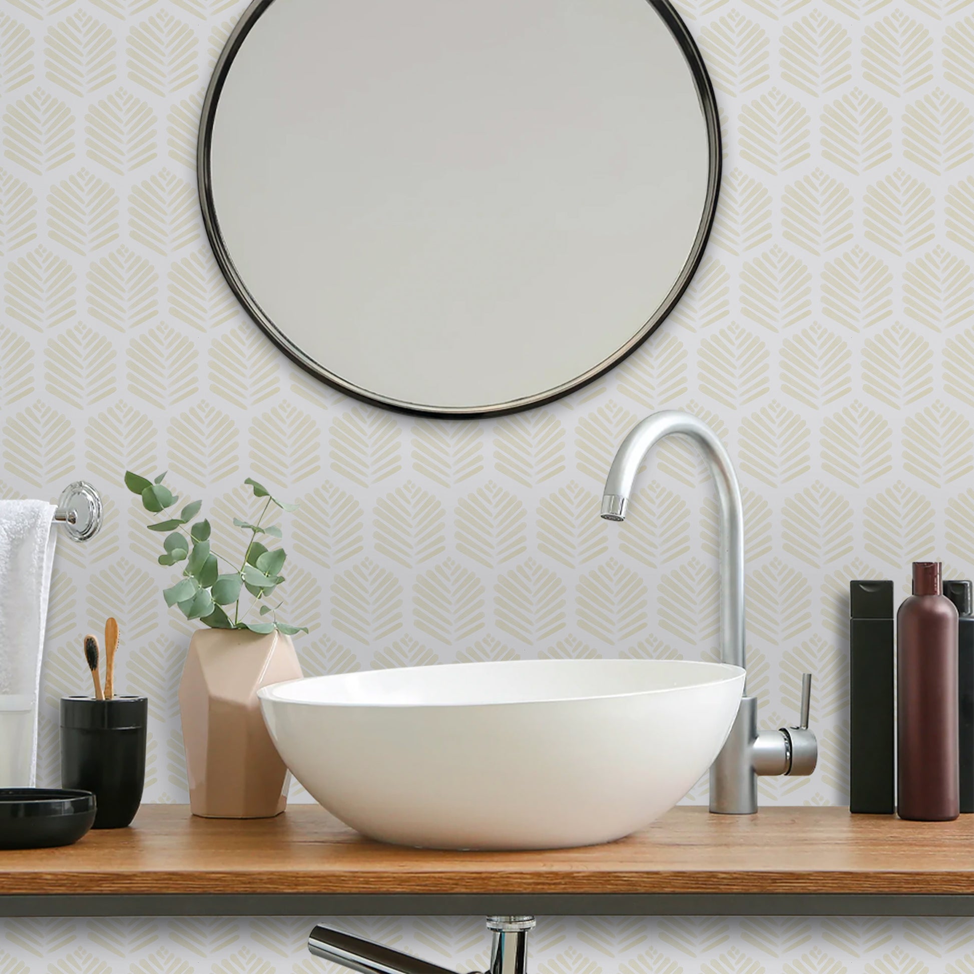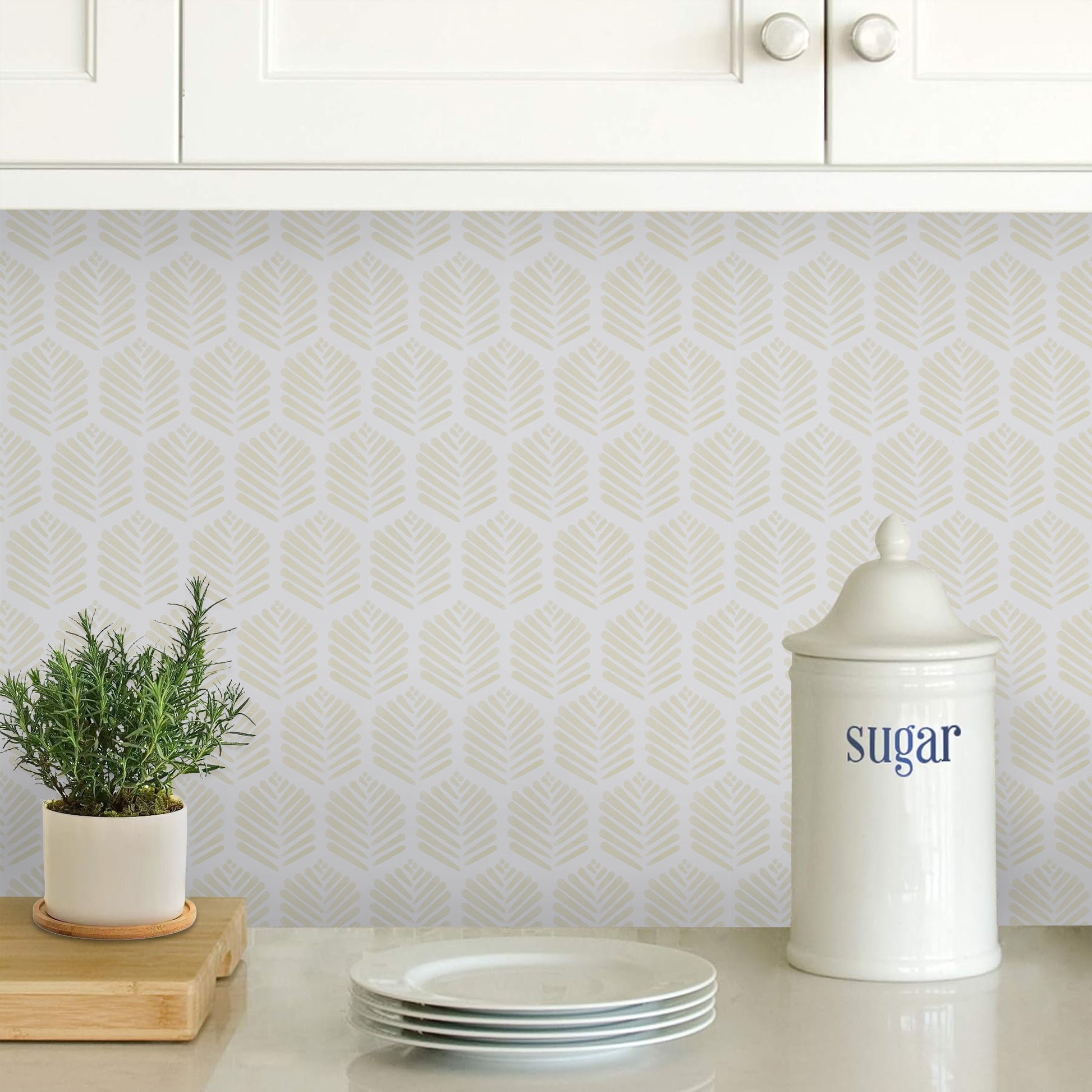 Abyssaly Beige Leaf Peel and Stick Wallpaper has self-adhesive backing on the contact paper that can be peeled off and pasted directly. The back is also labeled with dimensions, making it easy and simple to install with no measuring required.