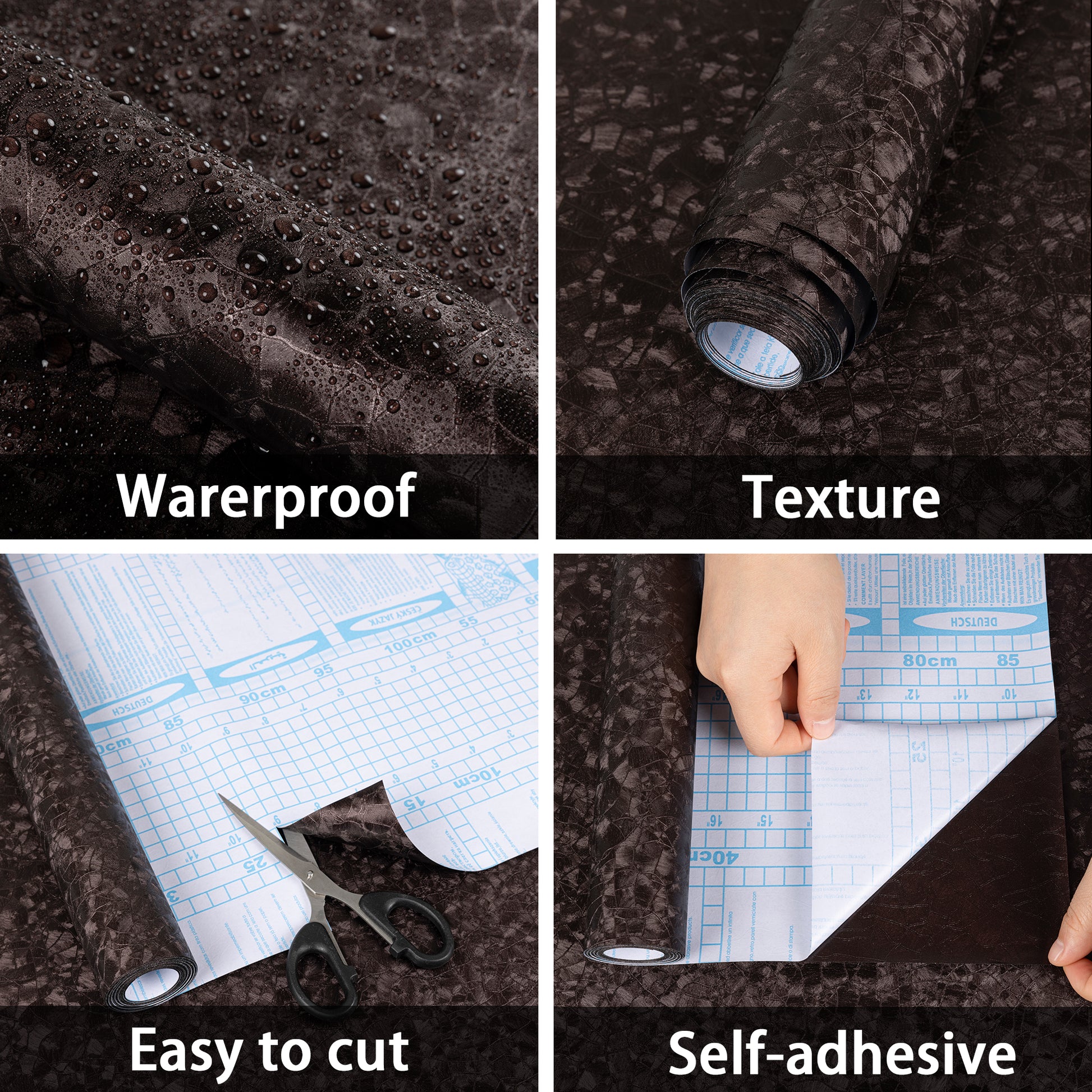 Embossed wallpaper, easy to install, no need for extra glue, one tear and stick. One person can also easily operate. The back of the peel and stick wallpaper is designed with grid lines, easy to cut.