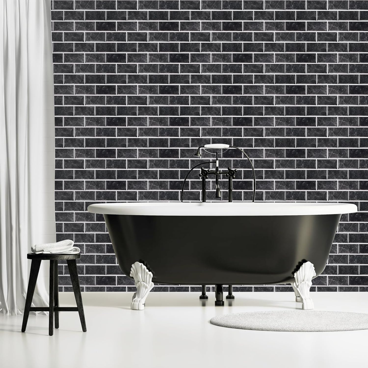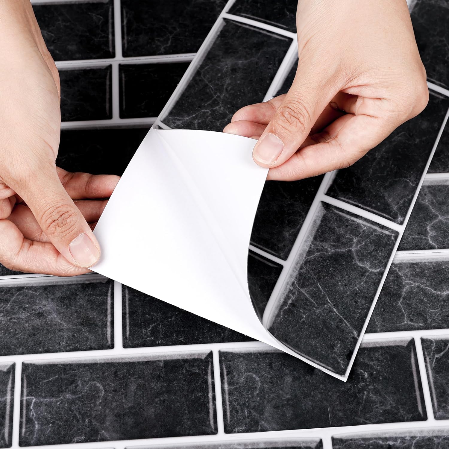 Backsplash Tile for Kitchen Peel and Stick, 12-Sheet Stick on Subway Tiles for Kitchem, Bathroom Back Splashes, 11.8" x 5.9", Black