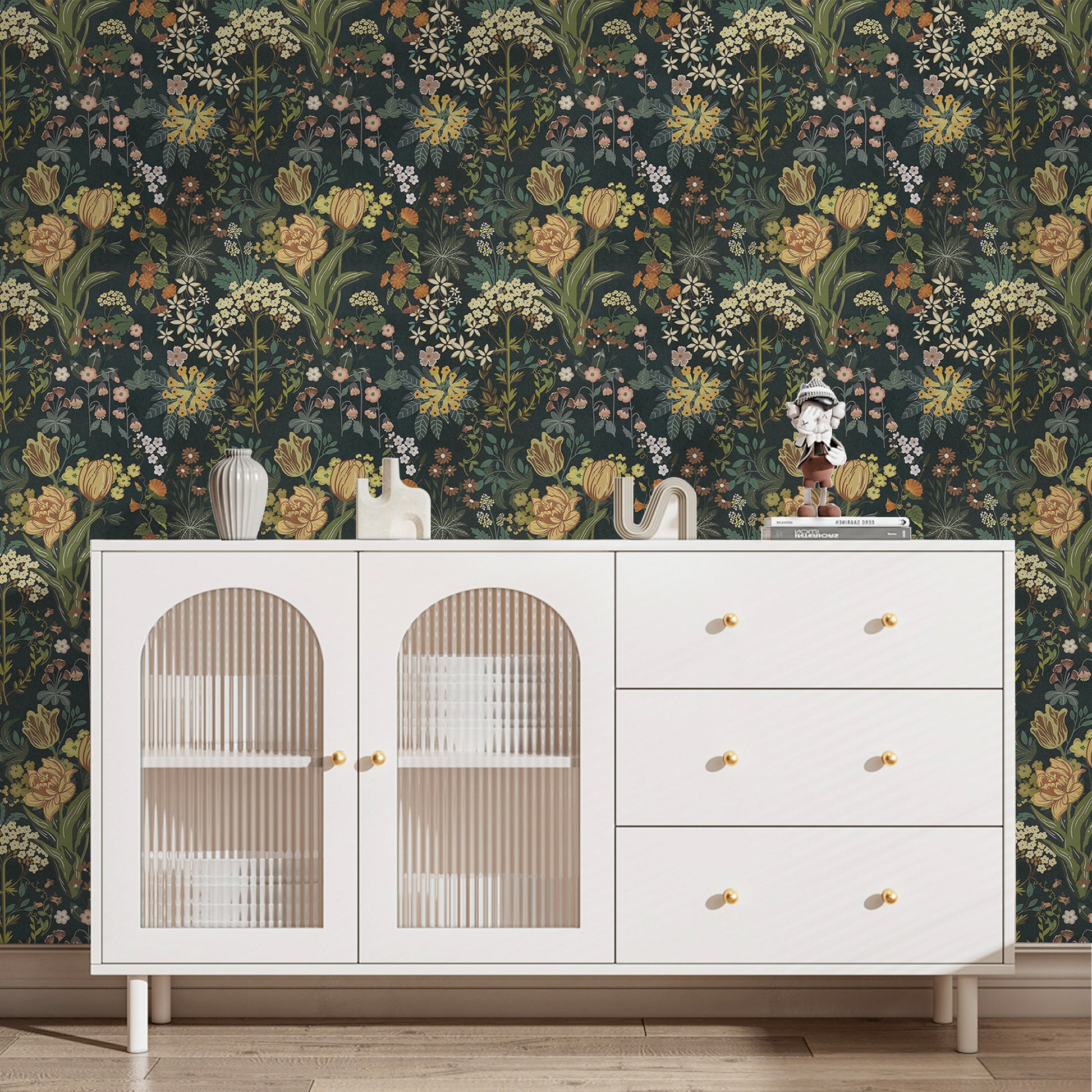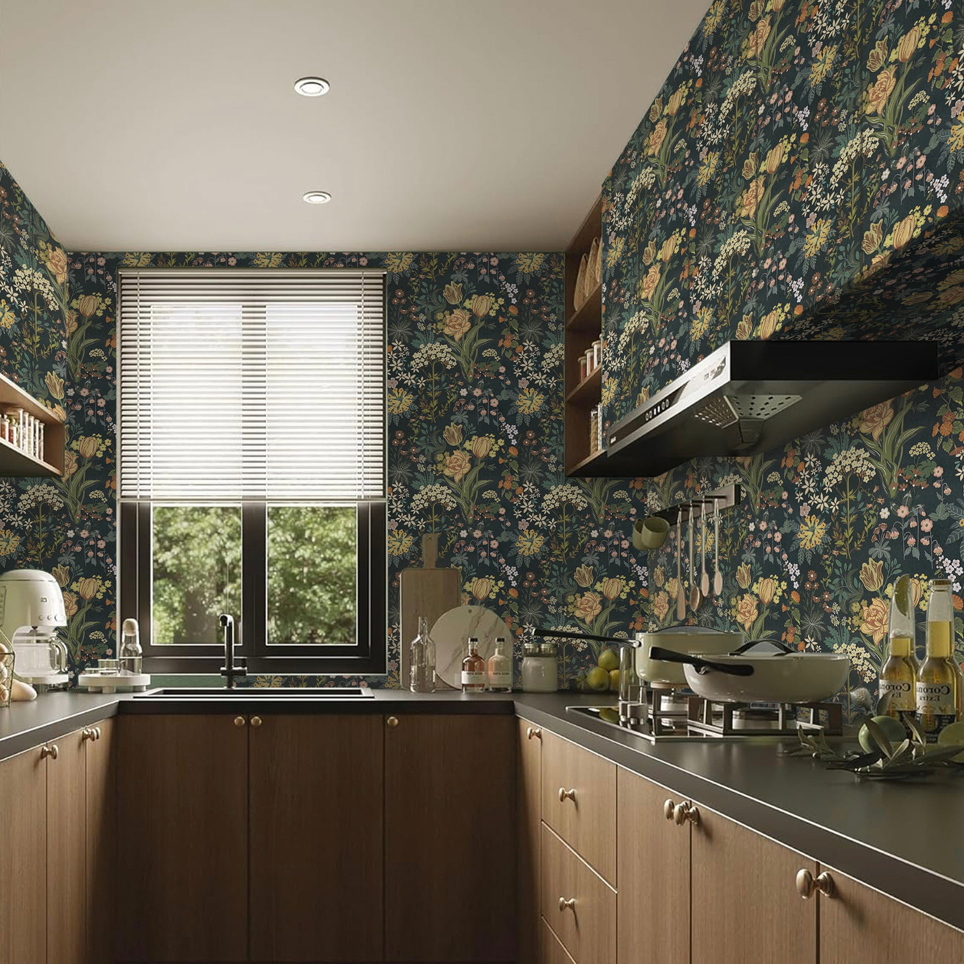 Floral Wallpaper Peel and Stick 17.7" x 118" Tulips Dark Self Adhesive Removable Wallpaper Peel and Stick for Home Bedroom Cabinets Thicken