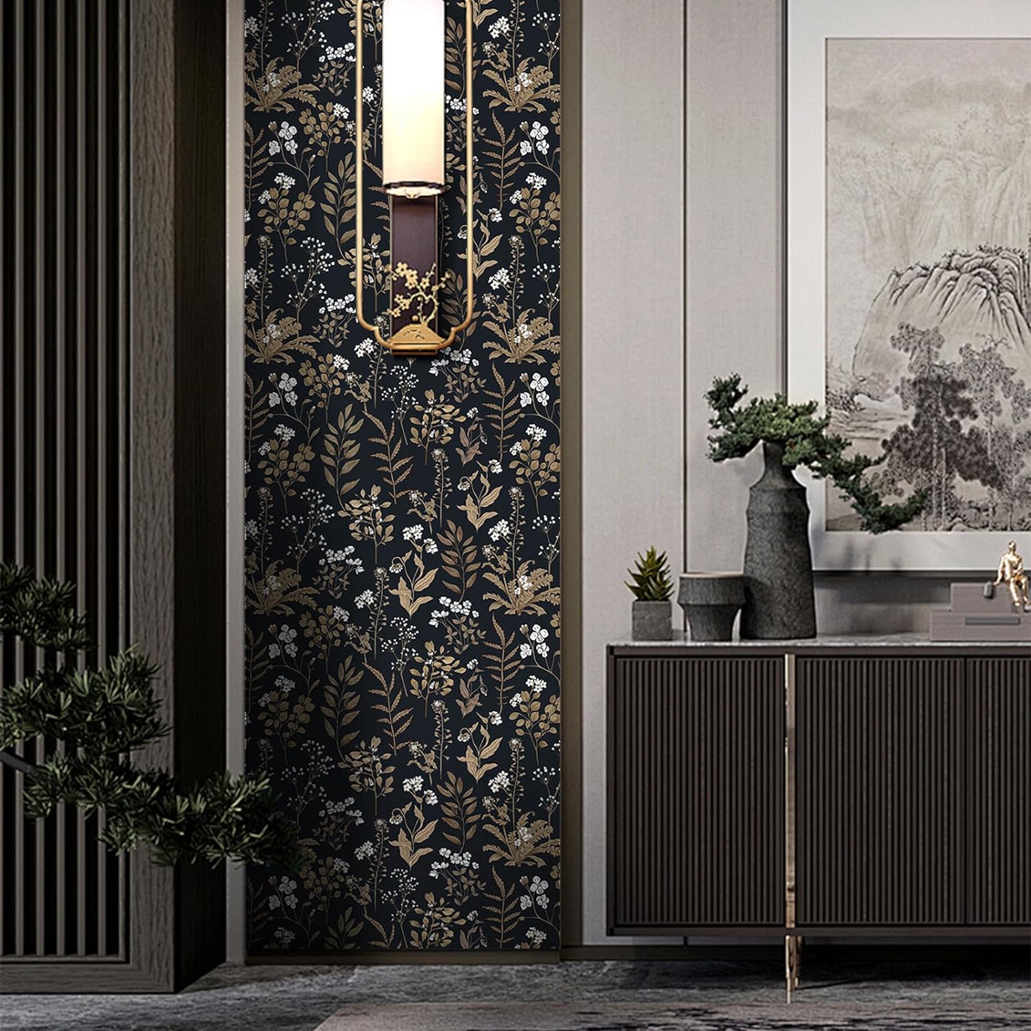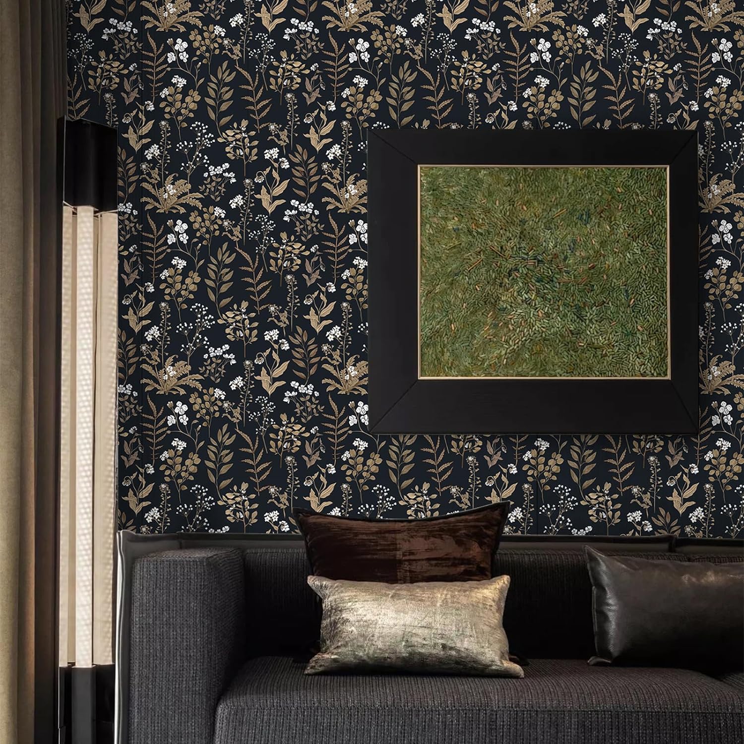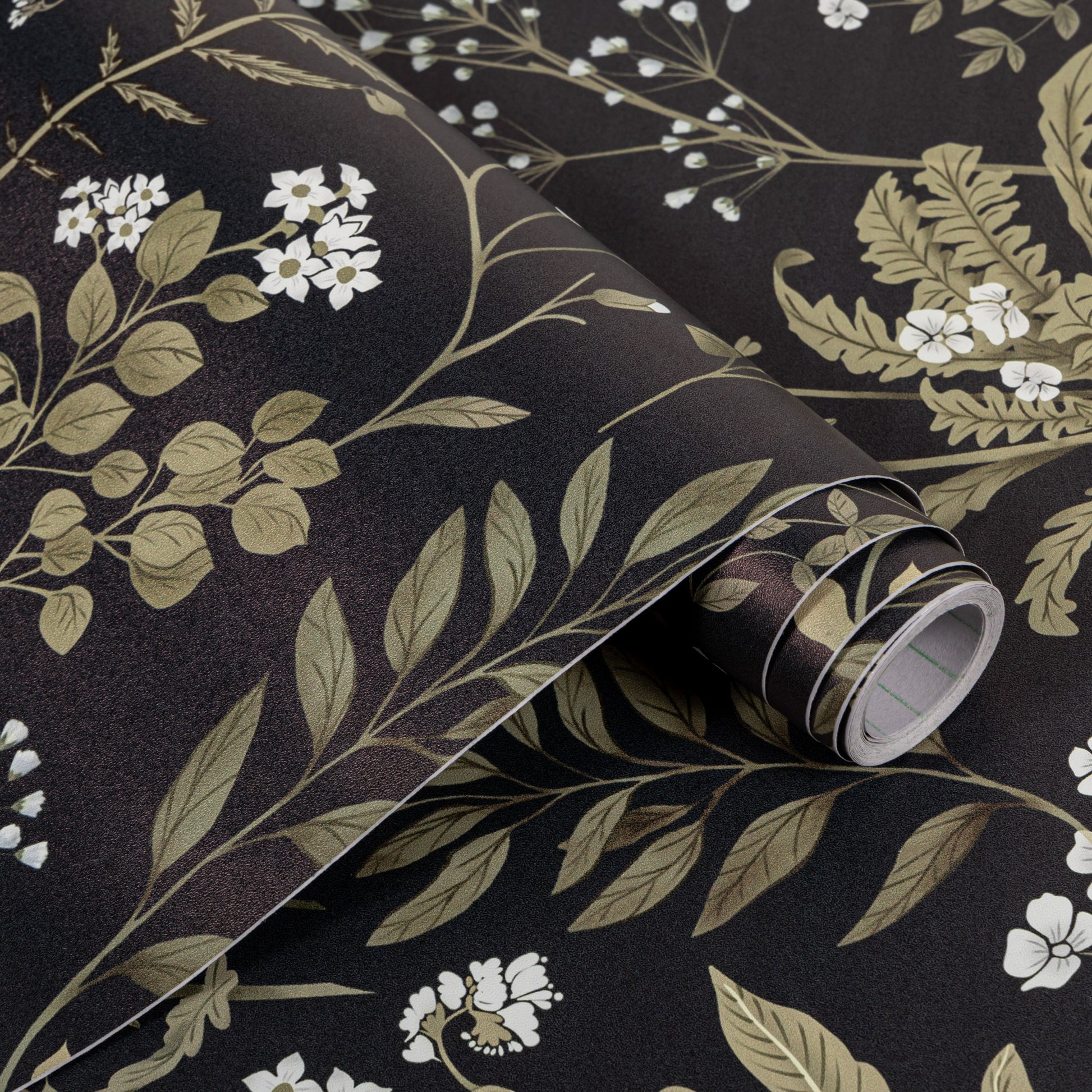 UMIGGEE 17.7-in x 393-in Floral Wallpaper Peel and Stick Floral Black Wallpaper Self Adhesive Flower Wall Paper Contact Paper Home Decor Wall Covering Old Furniture Renovation
