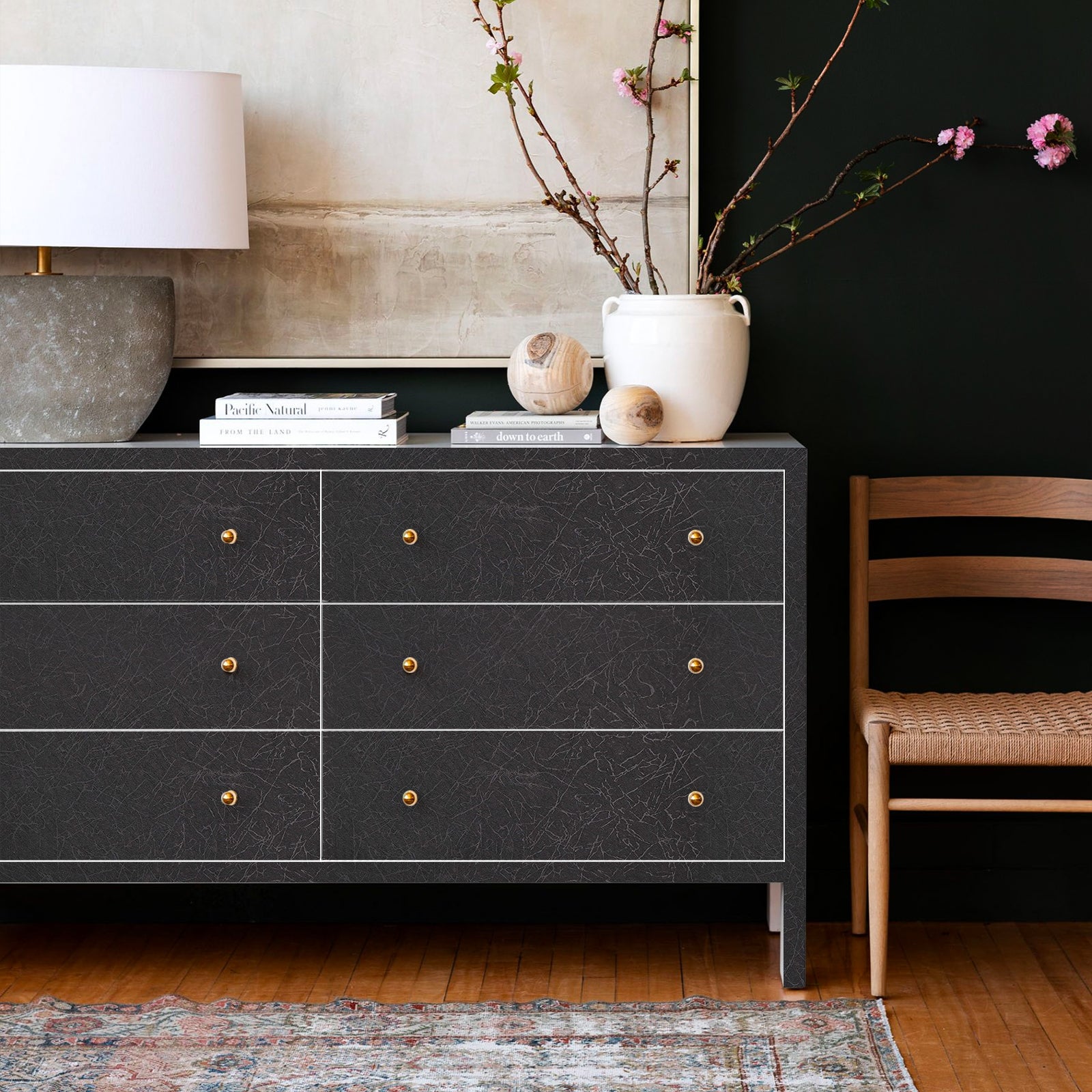 The peel and stick black wallpaper can be used to decorate a wide variety of surfaces including: refrigerators, washers and dryers, staircases, cabinets, doors, filing cabinets, bookcases, etc. Inexpensive but high quality. Safe to use in rental homes, apartments, dorms, & offices