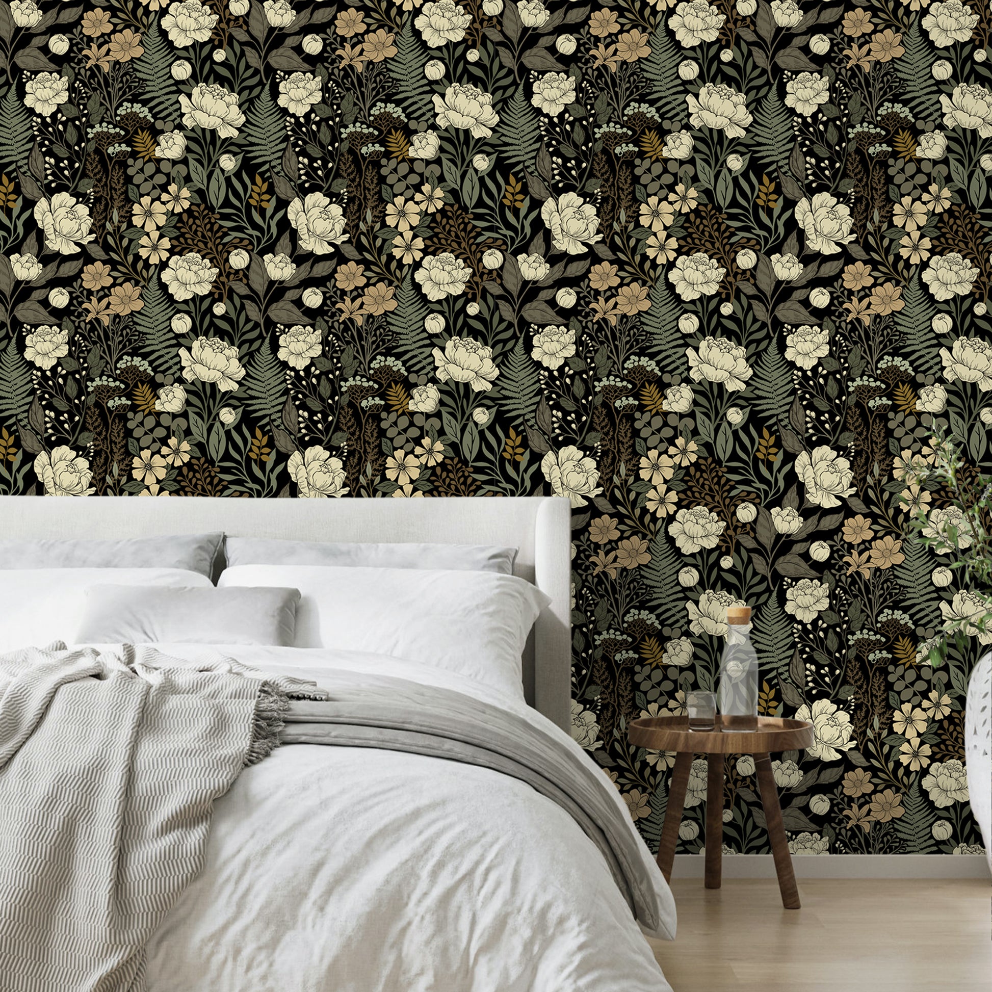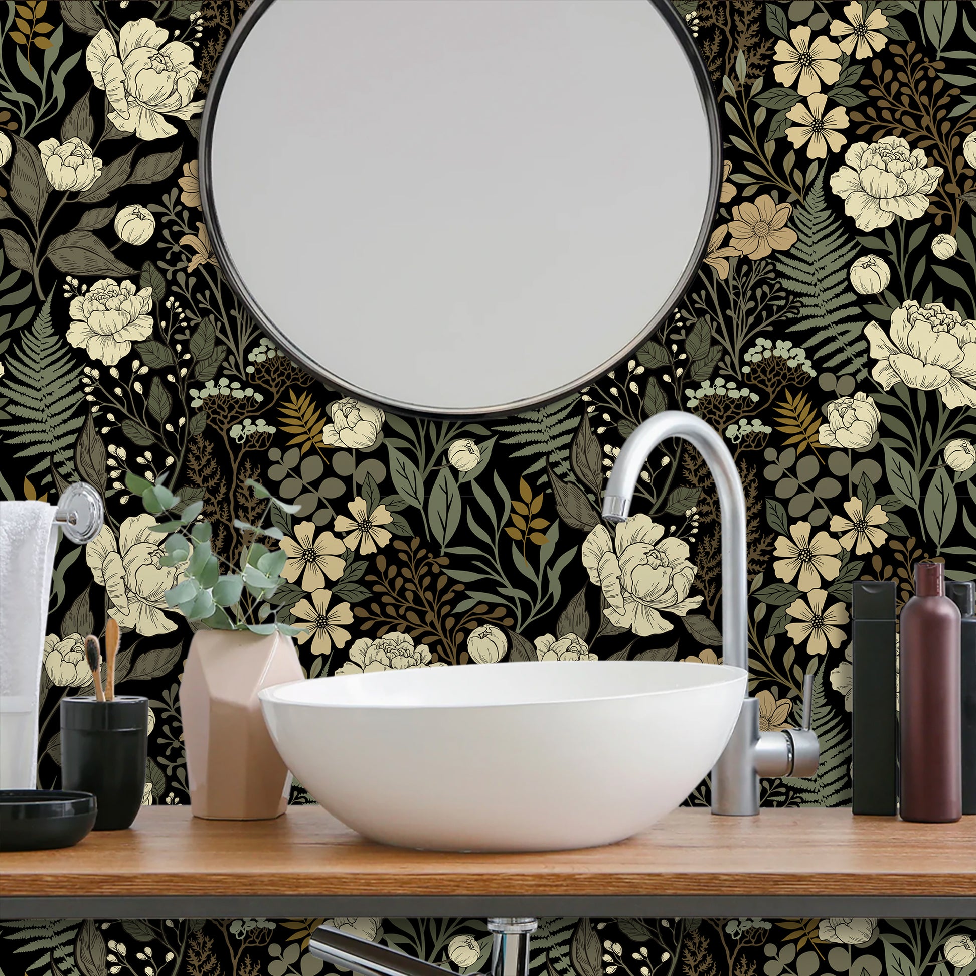 UMIGGEE Floral Wallpaper Peel and Stick Floral Black Wallpaper Self Adhesive Flower Wall Paper Contact Paper 17.7" x 118" Home Decor Wall Covering Old Furniture Renovation